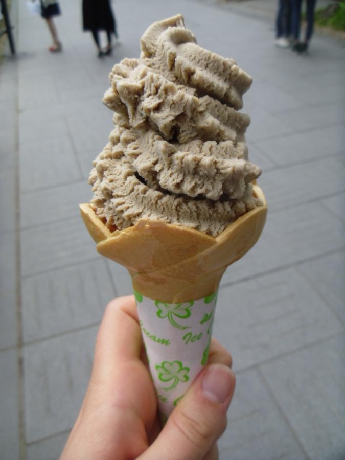As usual, I have some photos of ice-cream. The first one is apparently soba ice-cream, like soba noodles. Soba is buckwheat, so I have no idea what that would be like in an ice-cream. Savoury-tasting maybe?