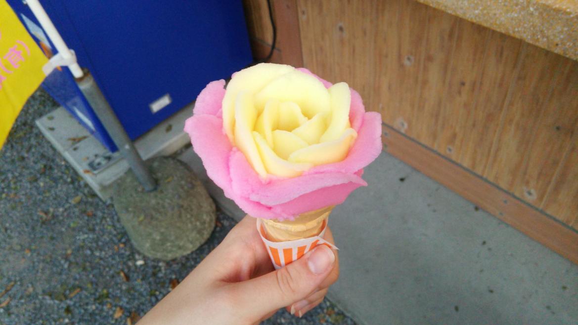 The second photo is ice-cream that looks like a flower. It's in two flavours as well, strawberry and something else, at a guess.